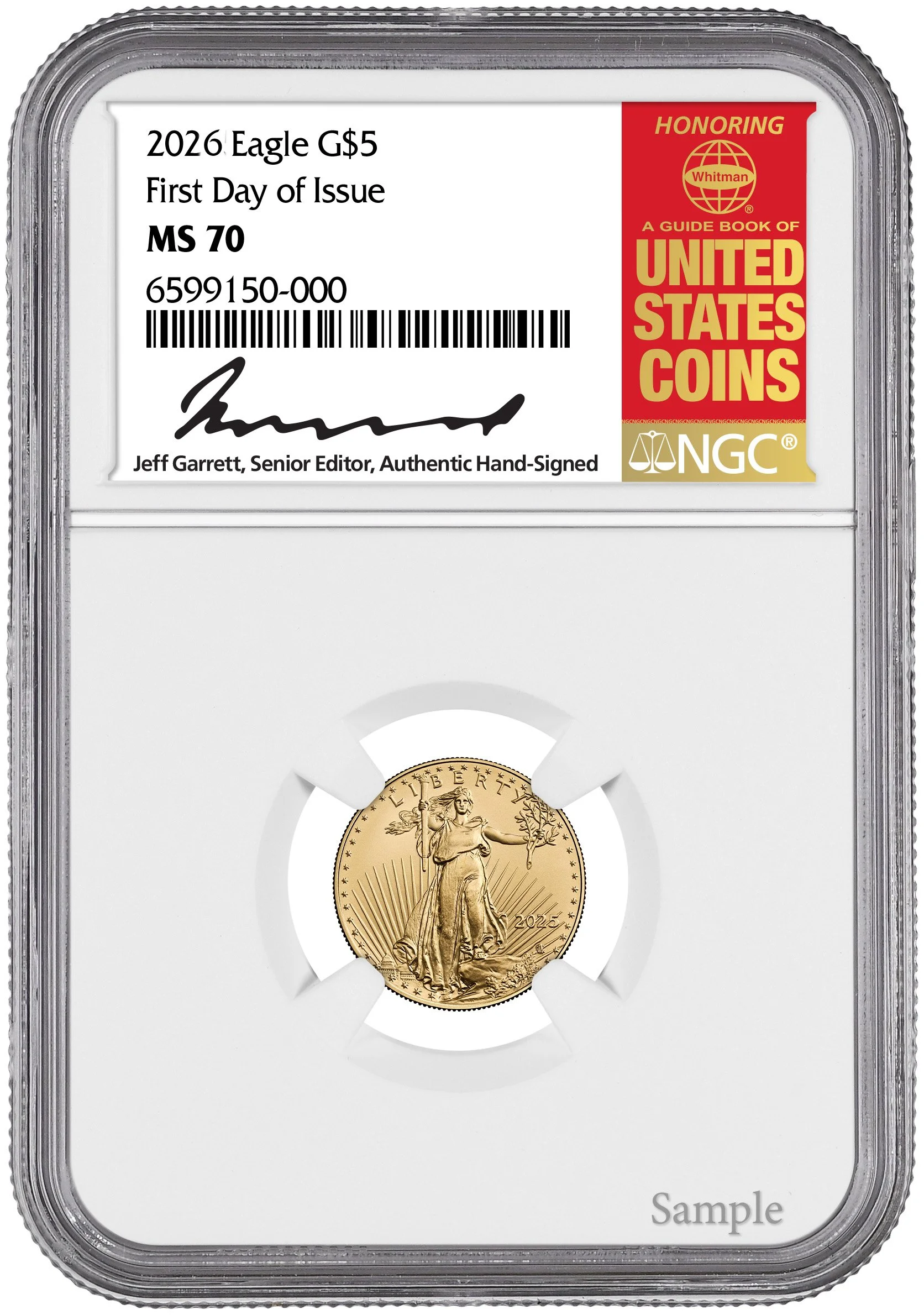 2025 brings us new issues of American Eagle gold and silver coins, and we’ve got the very best you can hold. These are coveted First Day of Issue specimens, in flawless MS-70 condition. What’s more, each specimen label has been individually autographed by Jeff Garrett (if you’re not familiar with Garrett, check out his bio below).